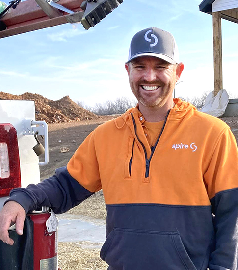 A firefighter in nearby Joplin for nine years before he joined Spire in 2018, Trenary leaped into action, stopping his truck and grabbing the fire extinguisher. Meanwhile, the homeowner, an elderly man, came outside to check on the burning leaves, not even realizing his house was on fire. As Trenary began extinguishing the flames, he asked the homeowner to dial 911. “But he couldn’t get his phone to work,” said Trenary. “So, I dialed 911 and told them the address.”