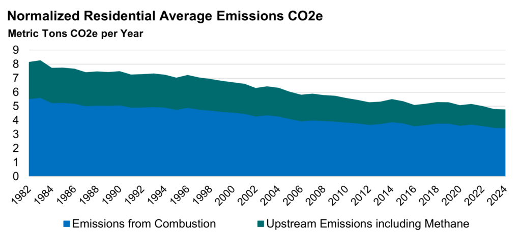Low-carbon natural gas resources and continued efficiency improvements provide pathways to decarbonize homes and businesses while keeping average bills within recent historical ranges.