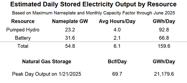 Source: Energy Information Administration, S&P Global Commodity Insights for Gas Storage Data as of Sept 11, 2025. NG output on Jan 21, 2025. Electric output estimated using EIA June 2025 maximum nameplate capacity * maximum daily dispatch capacity.